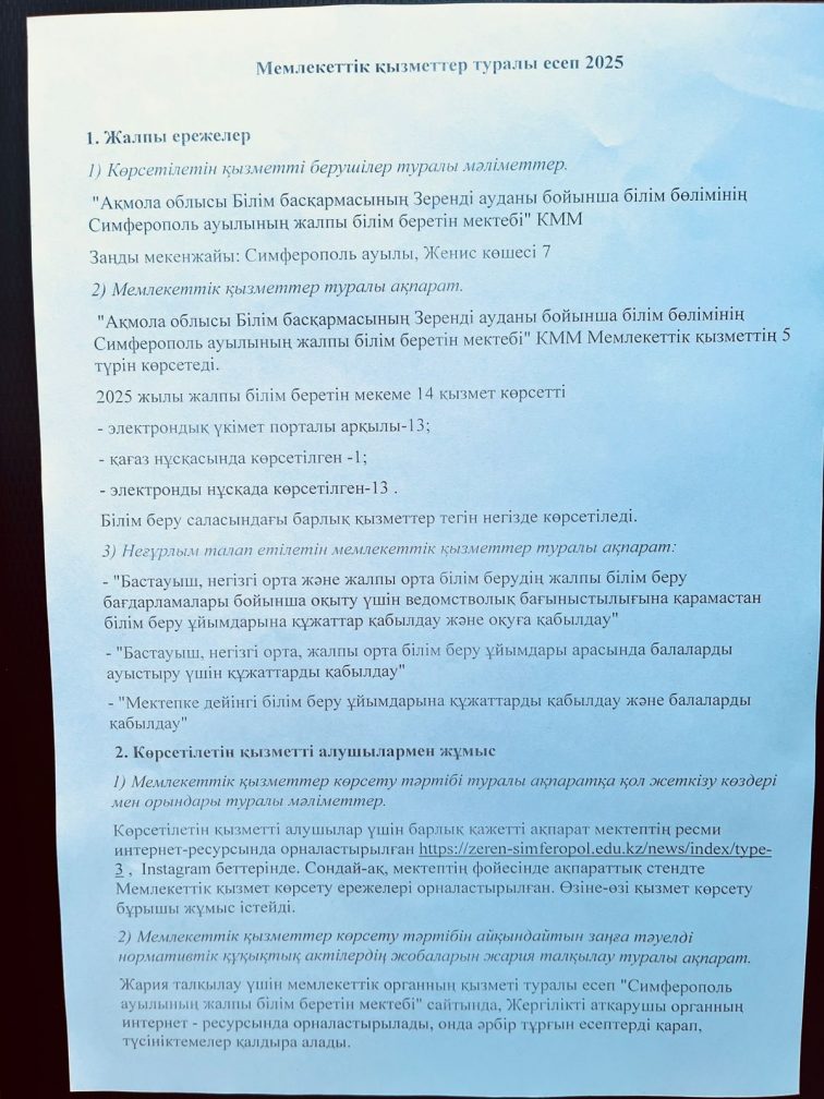 "Ақмола облысы білім басқармасының Зеренді ауданы  бойынша білім бөлімі Симферополь ауылының жалпы орта білім беретін мектебі"  коммуналдық мемлекеттік мекемесі
