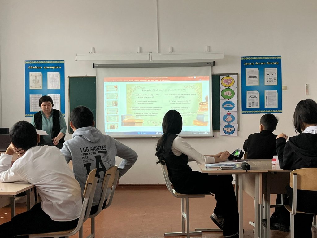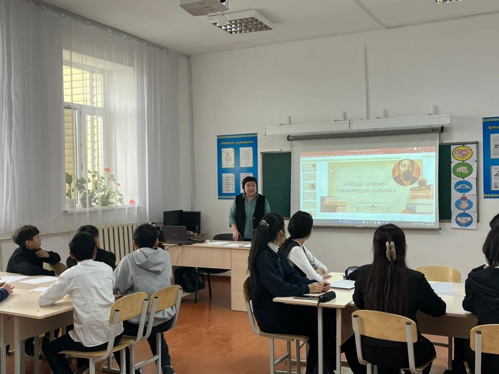 Қазақ тілі мен әдебиеті пәнінің онкүндігінің жоспарына сай 8-сынып оқушыларымен"Абай әлемі" атты сыныптан тыс іс- шара өтіп, Абайдың даналығы-бүгінгі ұрпақ үшін мәңгілік өнеге екені түсіндірілді. "Абай әлемінде" жүріп, рухани бай болайық!
