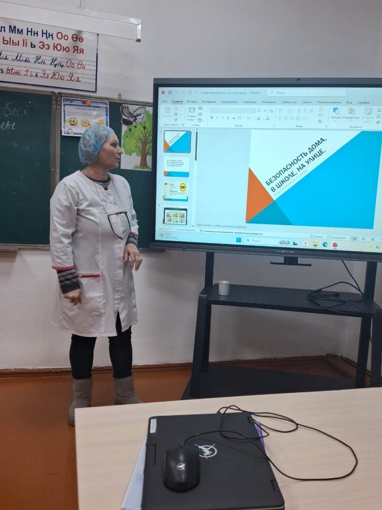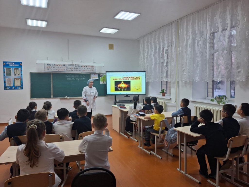 В КГУ"ОШ с.Симферопольское " Проведен просмотр слайдов на тему : " Зависимость от энергетических напитков". " Безопасность в школе, дома и на улице ". М/С школы Тыртышная С.В