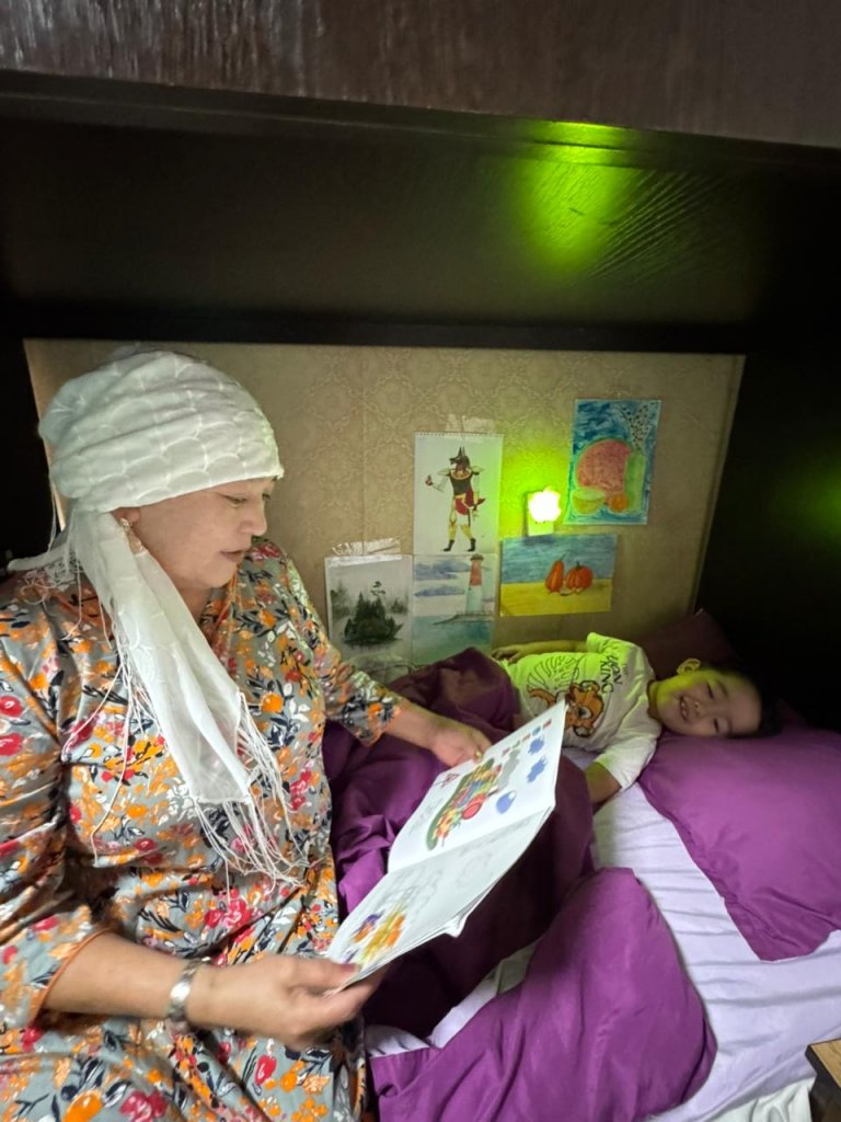 "Аяжан" шағын балалар орталығында "Әжемнің ертегісі" тақырыбына сай фотосуреттер бейнеленді. Ертегіні тыңдау арқылы балалардың қиялы дамып, сөздік қоры молаяды. Әженің мейірімі арқылы жақсылық пен жамандықты ажырата біледі.