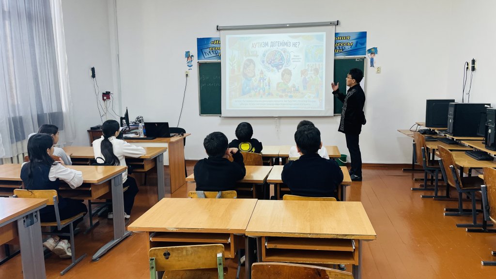 Аутизм туралы халықты ақпараттандыру айлығын өткізіу жоспары бойынша «Бәріміз біргеміз, бірақ әртүрліміз» атты тақырыбында сынып сағат өткізілді